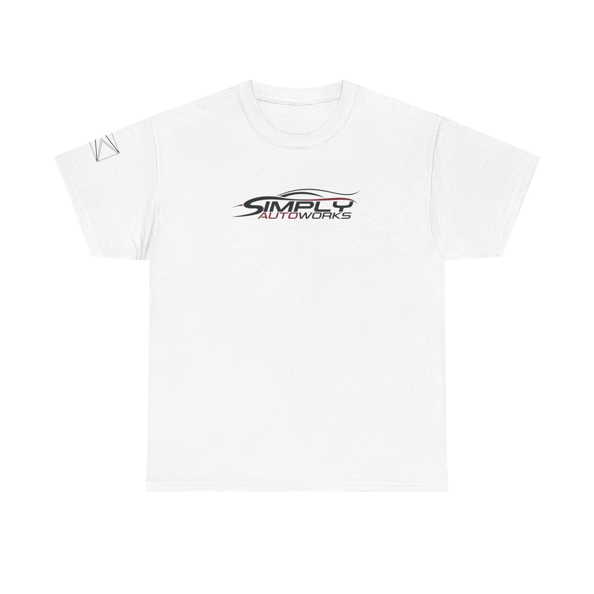 Show your support with the Simply AutoWorks Signature Tee in white, featuring our distinctive logo and a Guyanese heritage flag on the sleeve. Providing comfort and cooling with a classic fit. 50/50 cotton/polyester material.